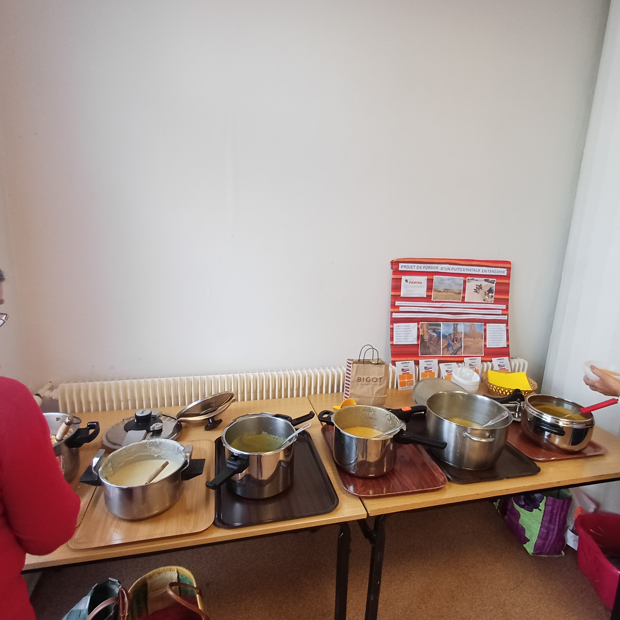 Collecting funds for the project by preparing and sharing soup every Tuesday, and juste before Easter celebrations during un event ‘bol de riz’